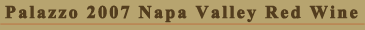Iam very excited about the release of my new PALAZZO 2007 Napa Valley Red Wine! Continuing in the style and quality of my previous vintages, this new release is another beautiful and complex wine . . . showing wonderful layers of rich fruit, soft tannins . . . and a lush, supple texture on the palate!