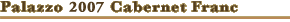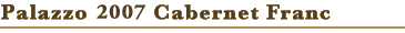 This year my PALAZZO 2007 Cabernet Franc is once again made from grapes from Truchard Vineyards in the Carneros region of Napa Valley. I continue to feel that this area, more so than other growing regions in Napa Valley, produces fruit more reminiscent both in flavor & complexity, like fruit from the ‘Right Bank’ region of Bordeaux.
