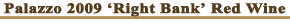 The PALAZZO 2009 'Right Bank' Proprietary Red Wine was the wine I first wanted to make. A wine with exceptional character & beauty - Floral and intriguing on the nose … complex and rich with delicious layers of fruit on the palate … and balanced throughout with good acid, minerality and structure. In essence … A Great Food Wine!