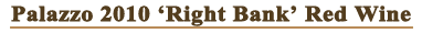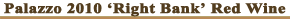 Hi from the Napa Valley - I am very excited to be releasing my new vintage of PALAZZO 2010 'Right Bank' Proprietary Red Wine!