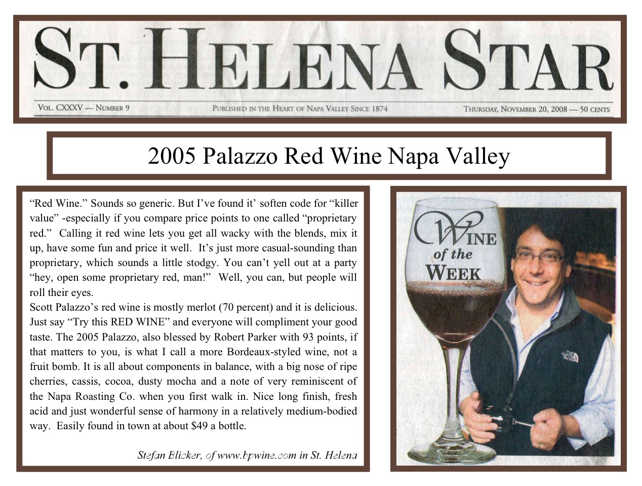 Wine of the Week: Palazzo 2005 Napa Valley Red Wine St. Helena Star